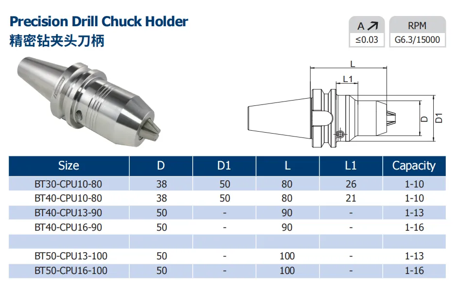 Los vástagos de CPU, que también son adecuados para taladros de sujeción, se utilizan en aplicaciones que requieren el más alto nivel de precisión. En el campo de la fabricación de moldes de alta gama, la precisión de los agujeros más pequeños en el molde afecta directamente el efecto de formación del molde y la vida útil, Y los Shanks DE LA CPU también se pueden utilizar aquí para crear productos de molde de alta calidad.
