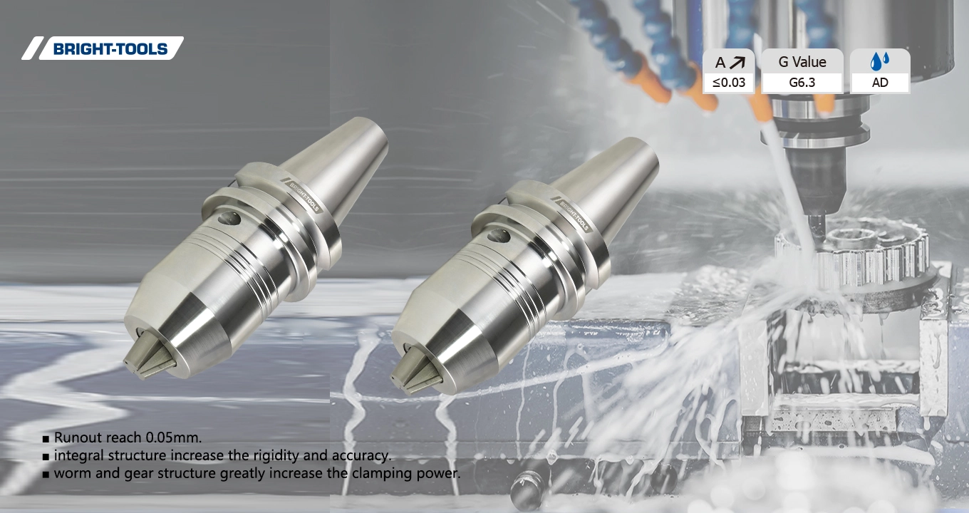 BBT CPU Drill Chuck, gusano y estructura de engranaje aumentan en gran medida la potencia de sujeción. Estructura integral aumentar la rigidez y la precisión. Runout alcance 0,05mm. El proceso de nitruración del uso de la garra aumenta la resistencia al desgaste y la vida más larga de la herramienta.